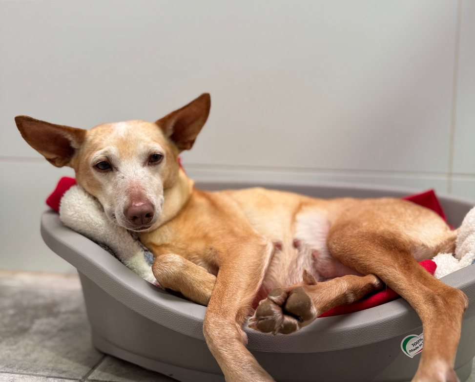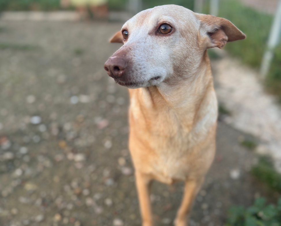 Indira ist eine dieser Podencas, die man nicht laut wahrnimmt – aber die einen tief berühren, wenn man sich auf sie einlässt. Sie braucht kein perfektes Zuhause.