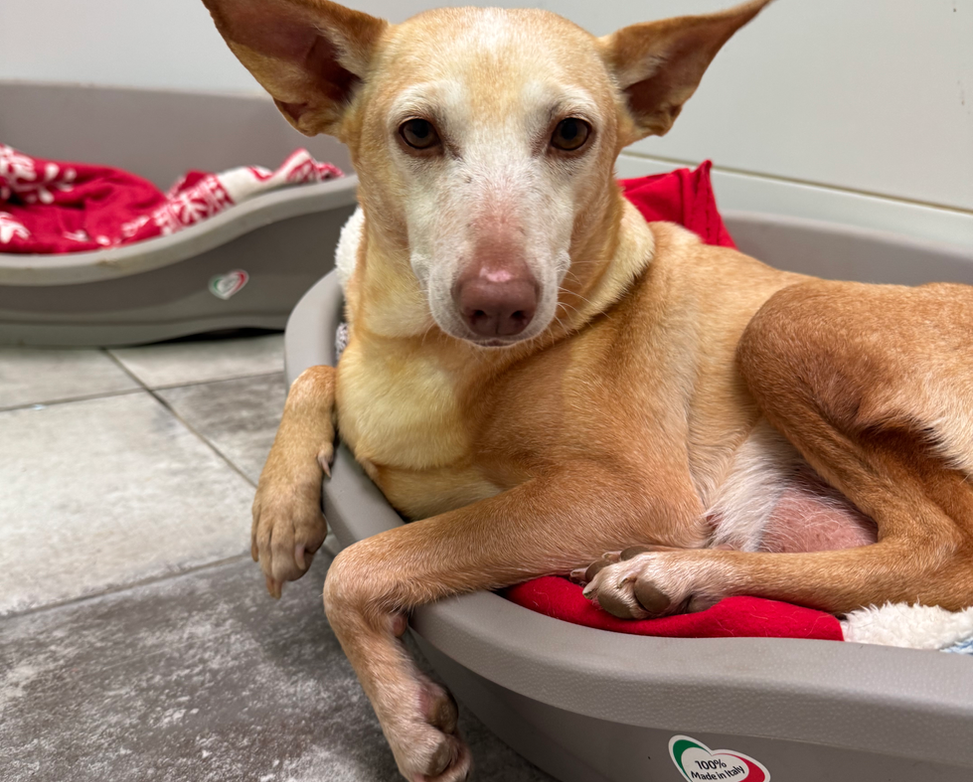 Indira ist eine junge, kleine Podenca, die von einem Ort kommt, den man kaum in Worte fassen kann.