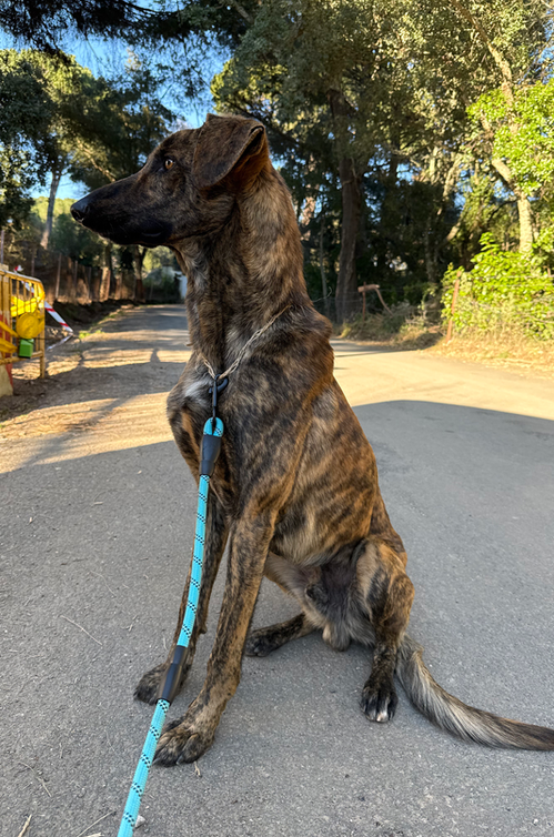 Für sein junges Alter ist Ivo erstaunlich ruhig und ausgeglichen. Er läuft perfekt an der Leine, ist intelligent, lernt schnell und zeigt sich im Alltag unkompliziert und entspannt. Mit seinen etwa 70 cm Schulterhöhe und seinem wunderschön gestromten Fell ist er eine beeindruckende Erscheinung. In ihm steckt eindeutig ein Galgo und vermutlich ein kleiner Anteil Mastín – eine majestätische Mischung mit einem sehr sanften Herzen. Ivo ist ein Hund, der fast überall glücklich werden kann, solange er bei seinen Menschen sein darf. Er braucht keine besonders aktive Familie, aber regelmäsige Spaziergänge und Zeit in der Natur würden ihm sehr gut tun.