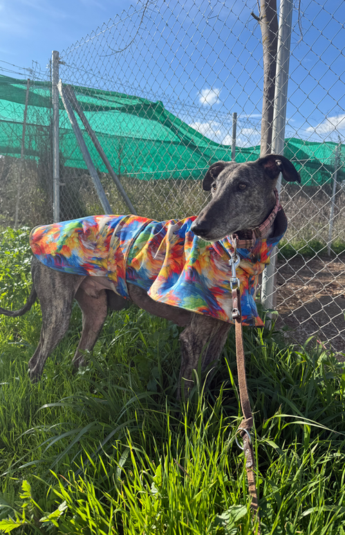 Der wunderschöne Galgo mit seinem eleganten grauen Fell und den sanften braunen Augen hat eine ganz besondere Ausstrahlung. Er ist gross, schlank, ruhig und unglaublich freundlich – ein Hund mit einer warmen, sanften Seele.