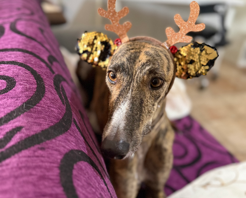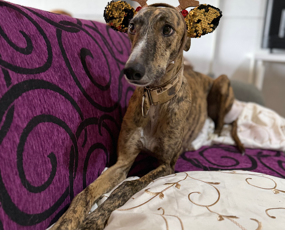Nathaniel ist auch optisch etwas ganz Besonderes: ein braun gestromter Galgo mit feinen weissen Abzeichen und Augen, die fast hypnotisierend wirken.
